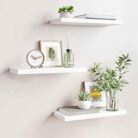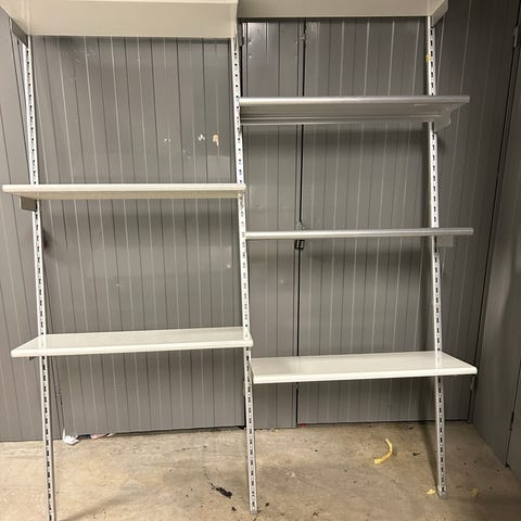 2st Väggpaneler 240x140cm i trä med 10st vita små hyllplan 30x30cm