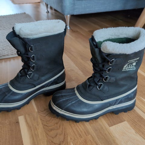 Extremt robust, varm och vattentät känga. Stl 45. Kraftig sula med bra grepp i snö. Beställt fel storlek, helt oanvänd (inköpt ifjol). Enligt reklam skall tåla -40 grader C. "Stor" storlek ger utrymme för extra sockar. (nypris upp till ca. 2400 kr).