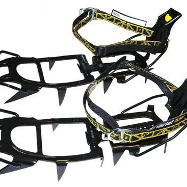 Stegjärn Charlie Moser Super 12. Passar de flesta kängor som har en klack. Petzl, som köpte Charlie Moser, har nog delar för att göra dem helt till step-in.