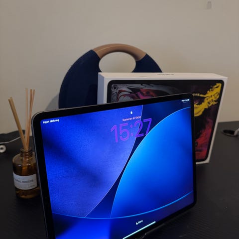 En iPad Pro 11 tum M4 i perfekt skick och fungerar som den ska. 46 cyklar på batteriet och 100% batterihälsa, sparsamt och pedantiskt skött.