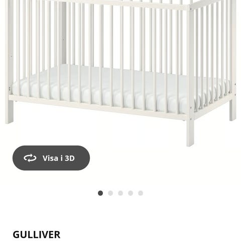 Spjälsäng säljes. En sida är bortplockad på bilden, men är enkel att montera och skickas självklart med. Bottenskivan kan placeras i två olika höjder.