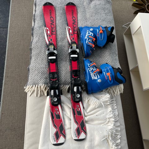 Säljer ett par barnskidor från Tecno Pro, längd 100 cm. Perfekta för nybörjare eller barn som åker i backen och vill utvecklas.