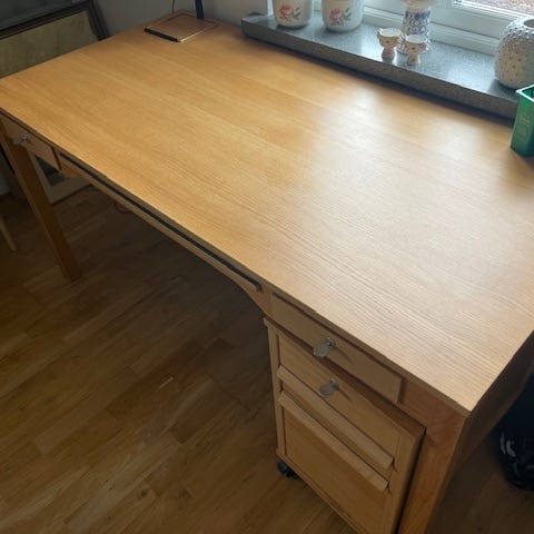 Fin skrivbord I Ek med en inbyggd lådan pris 900kr