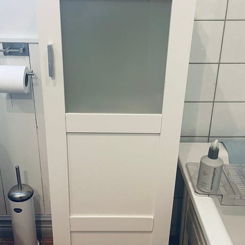 Ek, dubbla speglar, eluttag inne i skåpet, ledbelysning i överkant. 80 brett, 14 djupt, 70 långt