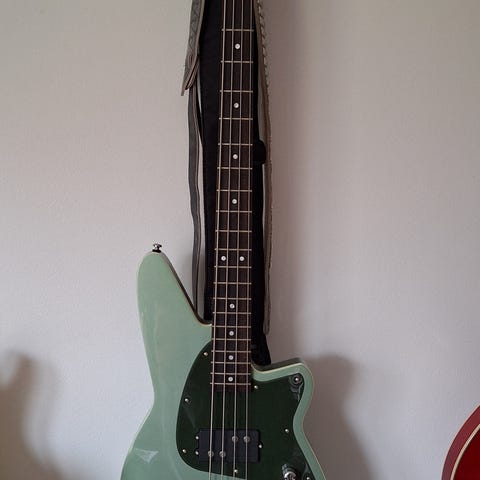 5-strängad OLP . Den femte strängen är en hög c-sträng . Micken bytt till en Bartolini . Caset lite trasigt vid blixtlåset
