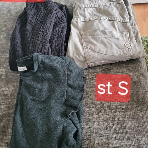 Jag har ett klädespaket till dam. Där e 3 långärmade och 1 kavaj. Dom e i jättefint skick. De e 50 kr för allt.
