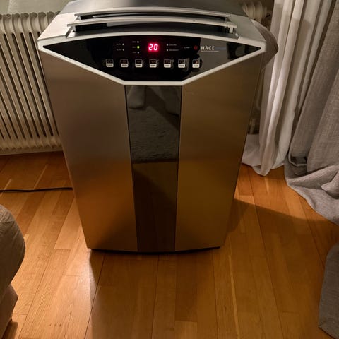 De’Longhi Pinguino PAC EX120 Silent portabel luftkonditionering i svart utförande. Enheten är avsedd för inomhusbruk och ansluts till frånluftsslang på baksidan. Panel med reglage och display sitter på ovansidan/fronten. Luftintag och ventilationsgaller finns på baksidan. Passar för kylning av rum där fast installerad luftkonditionering saknas eller som komplement vid varmare perioder. Ventilations-slang saknas.