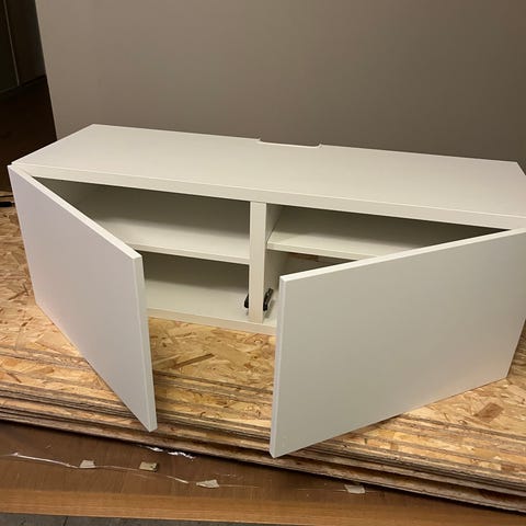 Vit bestå byrå från ikea som är delbar.
