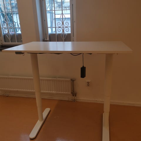 Dottern ska få eget rum så säljer nu mitt fina höj- och sänkbart skrivbord med vit bordsskiva och grått stativ. Rektangulär skiva med genomföring för kablar i ena hörnet. Elektrisk justering av höjden via motor i stativet. Passar som arbetsbord eller datorbord i hemmakontor eller kontorsmiljö.