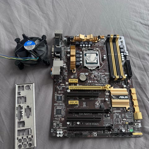 Säljer en fullt fungerande Moderkort kombo med moderkort, cpu och CPU kylare