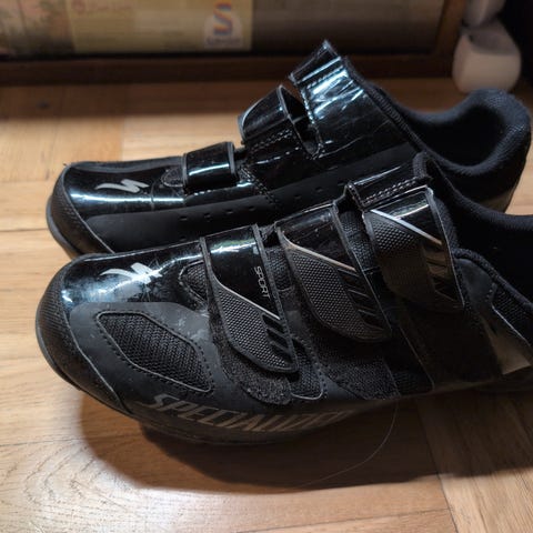 Shimano RC260 landsvägscykelskor i storlek 43. Skorna är svarta med blått foder och har ovandel med ventilationspaneler. Förslutning med spänne och kardborreband. Sulan är styv med fäste för landsvägspedalklossar (SPD-SL/liknande trehålsinfästning). Passar för landsvägscykling och träning där stadiga cykelskor behövs.