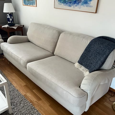 Säljer dessa två soffor. De är använda men helt okej skick. Den ena soffans sittkudde har ett trasigt fodral som behöver sys ihop. Priser är för båda sofforna. Hämtning senast imorgon fredag.
