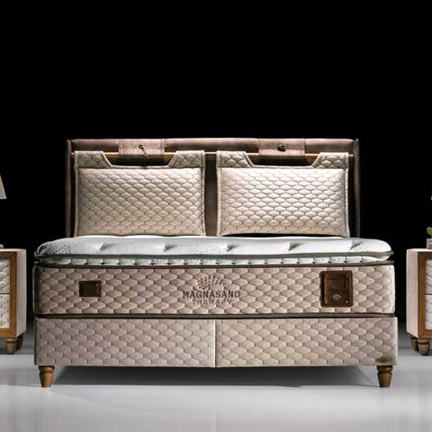Inkluderar djuphäftad sänggavel med LED-belysning och USB-portar. Fjärrkontroll medföljer.