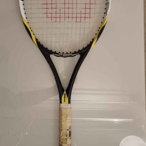 Wilson Minions tennisracket i gul färg med svart mönster. Racketen har strängat huvud och gul grepptejp. Passar för tennis och är utformad för yngre spelare eller nybörjare beroende på längd och styrka. Materialet är en kompositkonstruktion anpassad för lätt hantering. Racketen har standardgrepp och är lämplig för spel på bana både inomhus och utomhus.