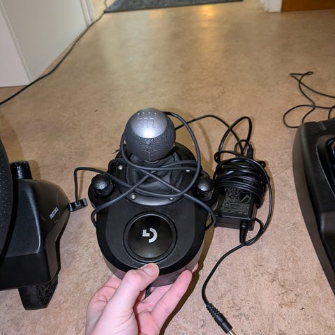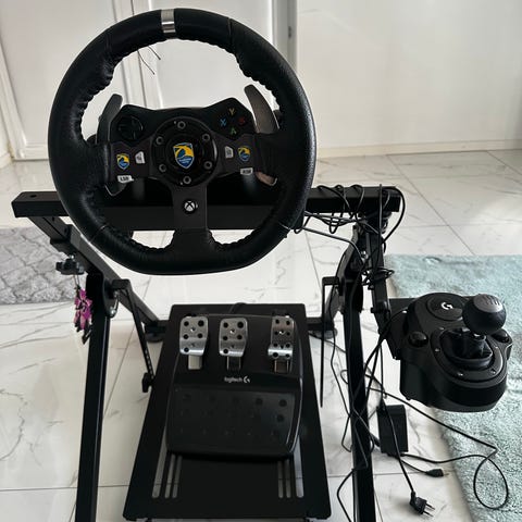 Logitech g920 med pedaler, växelspak, knappbox och ställning.