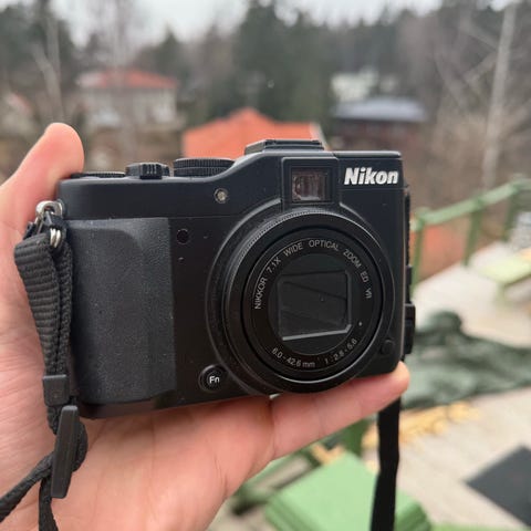 I bilderna syns originalkartong, handledsrem, mjukt fodral, manualer och programvara på skiva. Kameran lämpar sig för vardagsfotografering, resor och enklare videoinspelning. Specifikationer i detalj finns i den medföljande manualen.