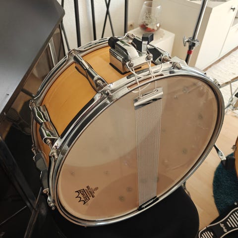 Vet inte vad det är för trumma. Håller på att tömma lite i källaren. Trumpinnarna ingår.