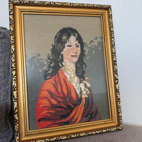 Broderi för hand. Handbroderad tavla med guldram och glas. Helst avhämtning. 59*74 cm