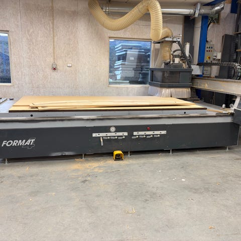 Professionell CNC-fräs för snickeri i mycket gott skick. Maskinen har endast gått ca 50 timmar och är därmed sparsamt använd. Perfekt för kök, garderober, inredningssnickeri och annan precisionsbearbetning i träbaserade skivmaterial.
