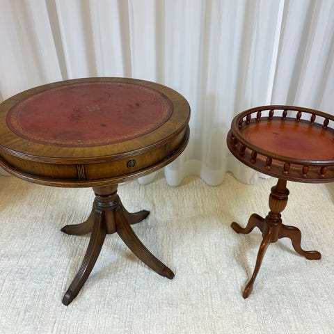 Två eleganta sängbord i gediget trä. De har en vacker, djup brun nyans. Lådorna är helt utdragbara. Stiliga beslag. Allt i mycket fint skick!