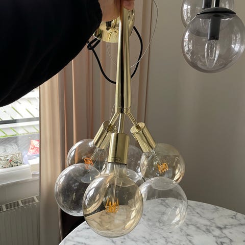 Jättefin taklampa ”Stockholm” i metall & vita glaskupor - dimbar. Perfekt skick!