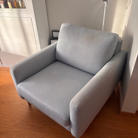 Fåtölj mått: djup 88 cm, bredd 104, höjd 88 cm