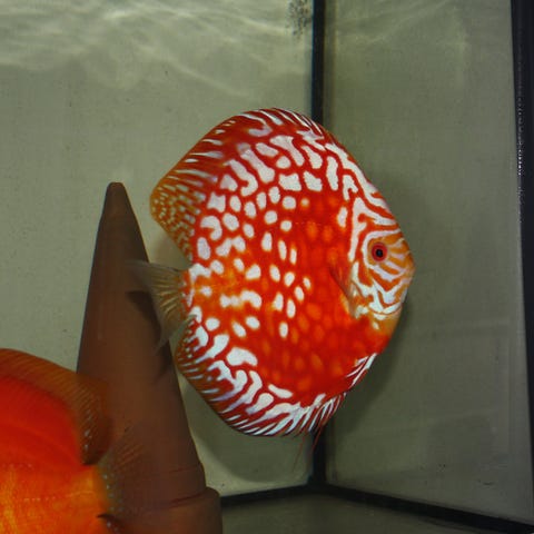 Discus odlad i Holland och av mycket hög kvalitet. Bilden är på vuxen fisk och skiljer sig när dom är mindre. Bättre att komma och kolla på plats i Staffanstorp så man får bättre uppfattning.