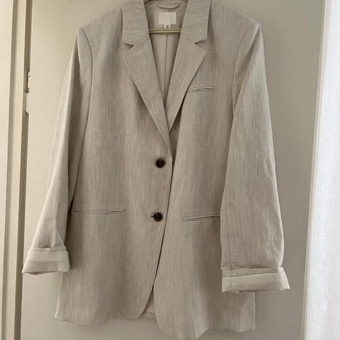 H&M kavaj för dam i storlek S. Modellen är enkelknäppt med klassiska slag och raka linjer. Färgen är blå och materialet är polyester. Kavajen har framfickor med lock och är helfodrad. Passar till vardag och arbete samt vid mer uppklädda tillfällen.