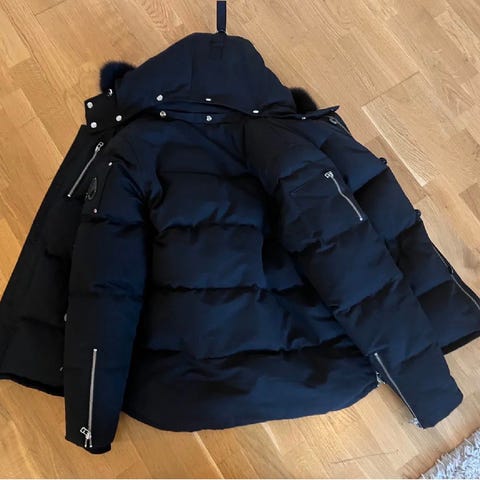 Moose Knuckles jacka för herr i storlek L. Jackan är svart och tillverkad i nylon med blank yta på stora delar av yttertyget. Modellen är vadderad och har quiltade partier samt hög krage. Ärmen har en ficka med Moose Knuckles-logga. Insidan har fodertyg med mönster och etikett med varumärket. Passar som ytterjacka i kallare väder. Hej Säljer min Moose knutels vinterjacka Duagld puffer som är som Nyskick Finns Någon Enstaka Små Repor på Moose knutels Märket men det är det ända och det Syns knappt kvittot Finns om så Önskas vill Gärna Bli av med den så Fort som Möjligt Tack! Har du Frågor Fråga Gärna😊 Nypris 8899kr Köpt Från Johnells på 70% Rea För 2818kr Mitt Pris 2000kr Prutat och klart Få med Galge på Köpet om du vill ha den