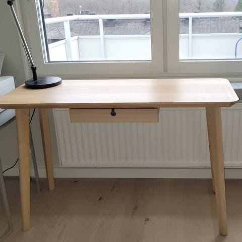 Öppningen av lådan är lite trög och har varit det sen jag köpte bordet, det är dock inte svårt att öppna och stänga den. Jag har även bytt ut handtagsknappen från orginaldesignen.