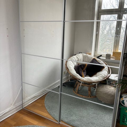 En dörr är svart 50 cm bred andra dörren är spegel 25 cm bred
