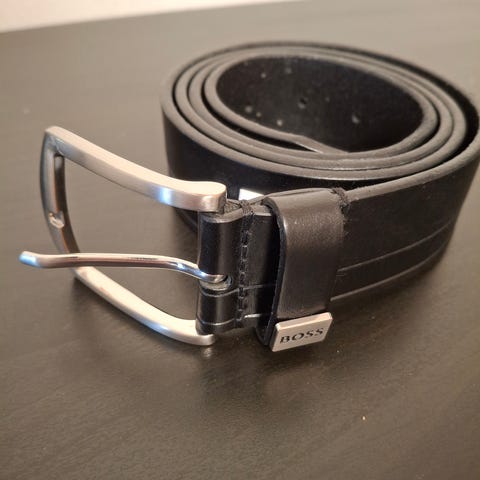 Tiger off sweden herrbälte i svart läder. Bältet har en bred, rektangulär spänneplatta i metall med mörk yta. Justerbar längd med flera hål. Passar som vardags- och kontorsbälte för herrkläder som jeans, chinos och kostymbyxor.