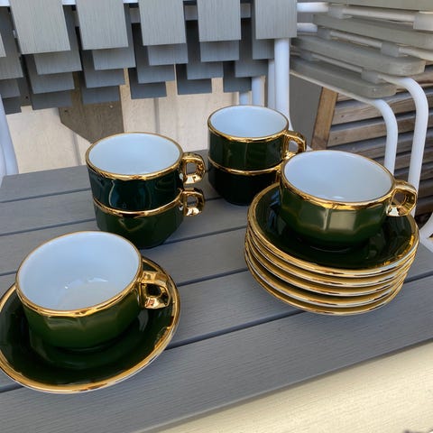 4 st tekoppar ” Vardag” gjorda av Karin Björkquist i mörk grön färg.