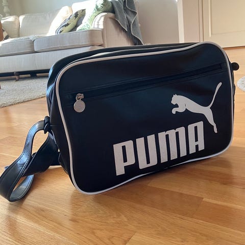 Puma väska i plast . Väskan är svart och har flera innerfack, bland annat separata fack som kan passa för dokument, surfplatta eller mindre laptop samt mindre fack för exempelvis pennor och kort. Bärhandtag upptill och avtagbar axelrem. Passar för vardagsbruk, arbete eller resor där man behöver organisera sina saker på ett överskådligt sätt.