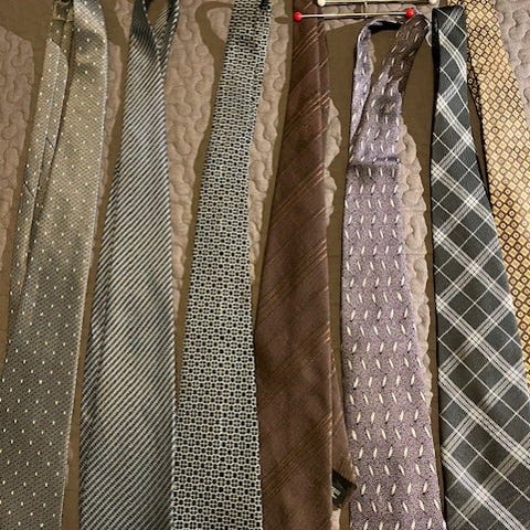 Okänt märke slipsar för man med flera olika mönster och färger. Slipsarna har varierande tryck, bland annat blommor, rutor och grafiska motiv i blandade färger. Passar till kostym eller skjorta vid vardag eller fest. Material och exakta mått är okända.