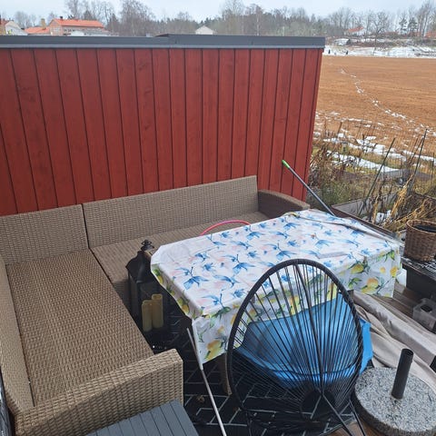 Uterumms möbler I rotting bord o fotpall från solhaga garden utbytbar klädsel till limegrönt 2 m×2,70 bord 1m×70cm