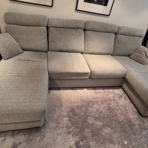 Bäddsoffa och även lite extra ytrymme under den andra delan av soffan