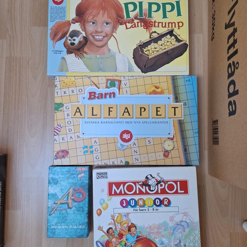 Diverse barnspel, pussel, helikopter med kontroller.