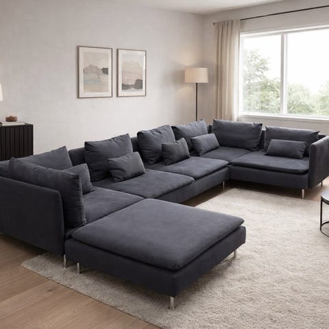 Schäslongdel till Söderhamn modulsoffa med armstöd på vänster sida sett framifrån.