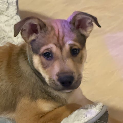 En tik Valp söker nya hem. Uppväxta i trygg miljö, sociala och nyfikna.
