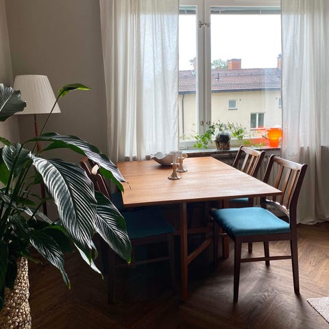 Stolar i grön sammet och kopparfärgade ben, 4 st -Pris 800kr.