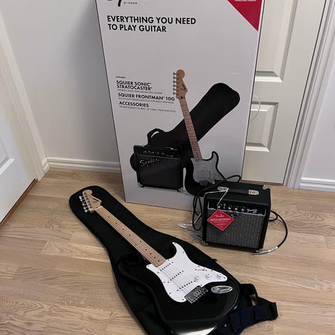 Elgitarr Fender Stratocaster inköpt för 20 år sedan, men mycket sparsamt använd. Säljes med ställ och fodral.