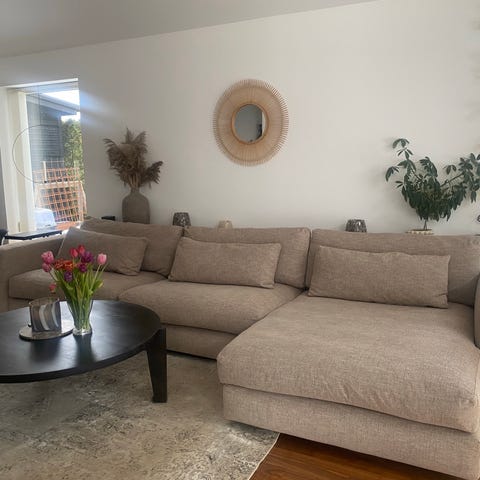 Fåtölj och fotpall från Artwood i offwhite.