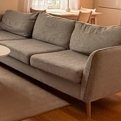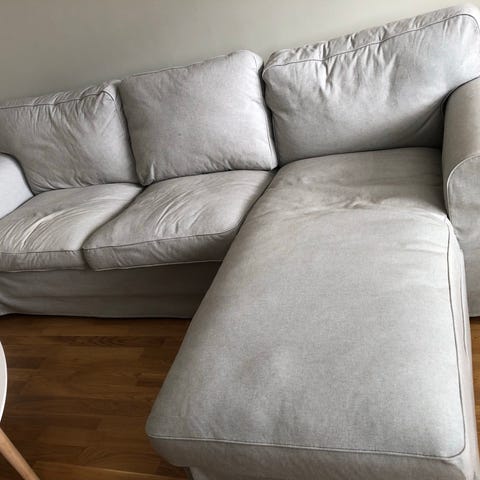 Väldigt bekväm och skön soffa, fungerar perfekt, jag hann inte tvätta fodralen innan nedmonteringen men det går att tvätta snabbt i tvättmaskinen :)