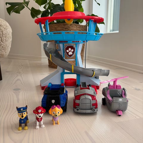 Paw Patrol lekset med utsiktstorn, flera fordon och figurer. Leksetet innehåller ett flerplans torn med rutschkana för fordonen. Till tornet hör flera mindre fordon samt flera karaktärsfigurer från Paw Patrol-universumet. Passar för barn som gillar rolllek och att återskapa scener från Paw Patrol-serien.