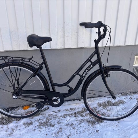 3- Växlad Monark stadscykel för unisex med ramstorlek M och 28" hjul. Cykeln har upprätt sittställning, pakethållare bak och korg fram. Bra kedja. Bra däck. Hel Höj/sänkbar sadel . Utrustad med stänkskärmar, kedjeskydd och fotbroms bak. Fast lås med 2 nycklar. Fast batteriljuse fram/bakPassar för vardagscykling i stadsmiljö och kortare pendlingsturer.