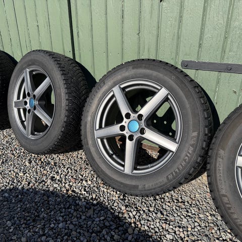 Dubbdäck i väldigt bra skick, har kört på dem i ca 10-15 mil. Sålde bilen och däcken har stått i ett kallförråd ungefär 1.5 år.