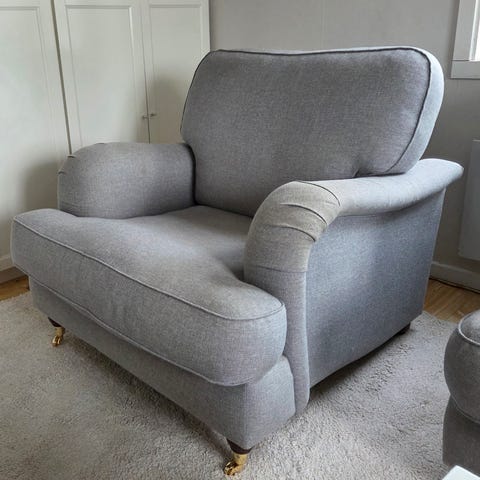 Två fina fåtöljer från Mio säljes. Den ena är mer använd och den andra är som ny. Produktinformation finns här: https://www.mio.se/p/elin-f%C3%A5t%C3%B6lj/325929?id=M2055077