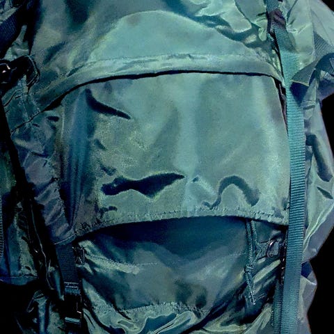 Sittryggsäckar: Den mörka metallramen en ryggsäck med inbyggd stol, likt Fauna Björnen Evo 40, som ofta används vid jakt eller fiske