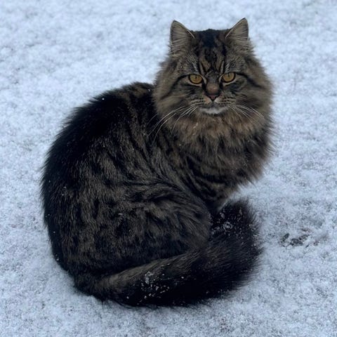 Vi måste tyvärr sälja vår fina Svante som är född slutet av april -24. Han är en korsning mellan norsk skogkatt och Maine coon.